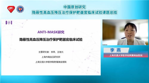 隱蔽性高血壓是一種特殊類型的高血壓,患者來院時(shí)偶測血壓數(shù)據(jù)可能不高,需要通過24小時(shí)動態(tài)血壓監(jiān)測或家庭血壓監(jiān)測來診斷。據(jù)國內(nèi)眾多研究顯示,隱蔽性高血壓患者靶器官損傷和心血管事件發(fā)生風(fēng)險(xiǎn)較正常血壓者顯著增加,ANTI-MASK研究作為第一項(xiàng)探索隱蔽性高血壓患者降壓治療效果的臨床試驗(yàn),首次說明了降壓治療有利于隱蔽性高血壓患者的靶器官保護(hù)。為讓更多臨床醫(yī)生知曉隱蔽性高血壓危害,優(yōu)化隱蔽性高血壓患者治療策略,在第八屆中國血壓監(jiān)測學(xué)術(shù)會議期間,上海市高血壓研究所、上海交通大學(xué)醫(yī)學(xué)院附屬瑞金醫(yī)院李燕教授特帶來專題報(bào)告,解讀ANTI-MASK研究的試驗(yàn)流程與試驗(yàn)結(jié)果。